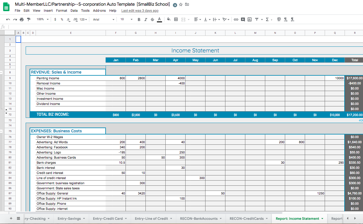 Also, google sheets has been a better solution because you can add us to your template (or your accountant or a tax pro or investor or partner or assistant!) and you can comment on any cell in the spreadsheet. This makes it easier to communicate about the numbers (or formulas or issues) directly in the spreadsheet. You also don't have to worry about having different versions, losing work and you can access your google sheets from any web browser!